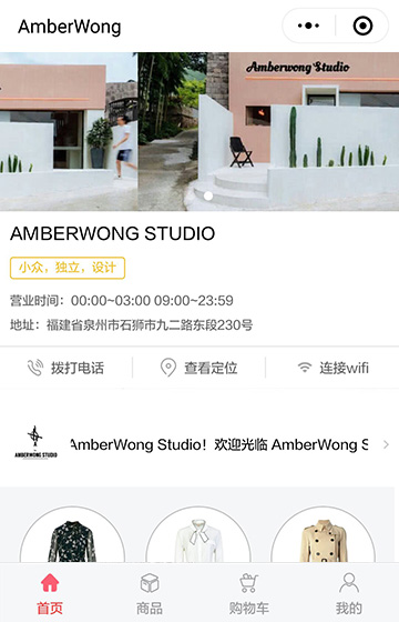 AmberWong是一个服饰类型的小程序商城,带有团购,分销等功能。