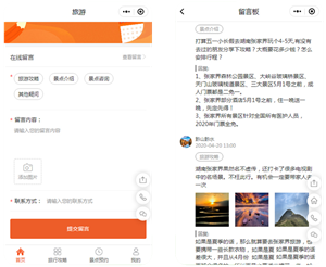 提供留言板功能,游客可随时留言,管理员进行回复解答,便于旅游攻略、注意事项、心得体会和种草等信息的交流。